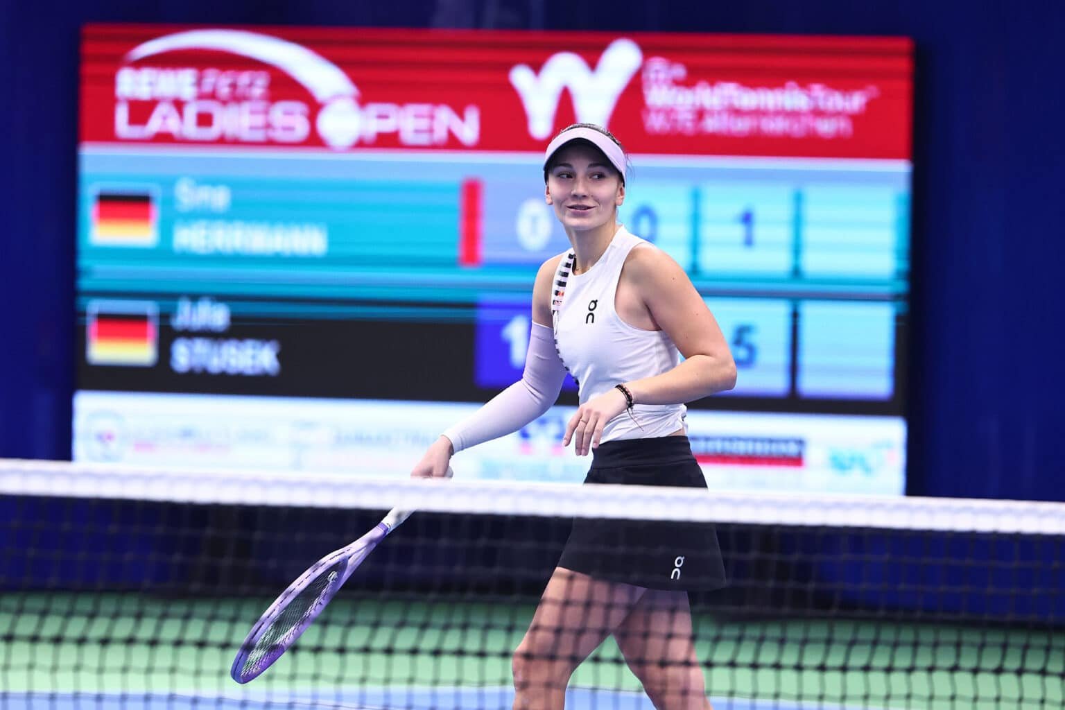 Acht Spielerinnen werden an diesem Montag bei den Rewe Petz Ladies Open ihr erstes Teilziel erreichen: In den acht Partien der zweiten Qualifikationsphase geht’s um die letzten acht freien Plätze für das Hauptfeld, das am Dienstag beim Frauentennis-Weltranglistenturnier in Altenkirchen Fahrt aufnimmt. Nach den Ergebnissen vom Sonntag und den Montag-Duellen steht fest, dass zwei Talente des Deutschen Tennis Bundes (DTB) aus der Qualifikation weiterkommen, weil es zwei innerdeutsche Duelle gibt. Mina Hodzic trifft auf Tina Manescu und Marie Vogt steht Julia Stusek gegenüber. Stusek hinterließ bei ihrem ersten Auftritt in diesen Jahr auf der Glockenspitze einen starken Eindruck. Die 17-Jährige brauchte für ihren 6:0, 6:1-Sieg gegen Sina Herrmann nur 54 Minuten. „Wenn Julia so weiterspielt, kann sie hier weit kommen“, zeigte sich auch Bundestrainer Torben Beltz beeindruckt. Während es Stusek im Eiltempo machte, lieferten sich hinter der Tribüne auf dem „Physio CKI Court“ Aneta Laboutkova aus Tschechien und die Deutsche Valentina Steiner einen Kampf auf Biegen und Brechen. Nach 2:57 Stunden Spielzeit gewann Laboutkova mit 2:1 Sätzen.
